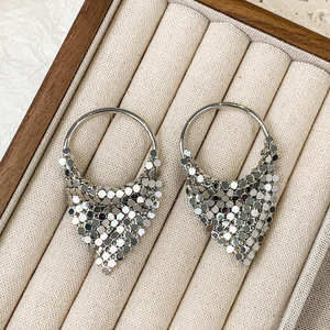 ヨーロッパとアメリカの誇張されたニッチデザインのパーソナライズされたイヤリング、クールなスタイルのイヤリング、ハイエンドのクロスボーダーリングスパンコールタッセルイヤリング