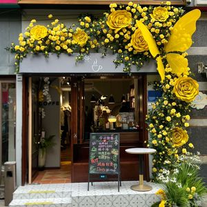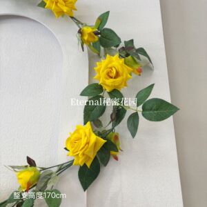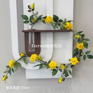 模擬黄色のバラのつるバラの物語紙の花と緑の植物のつる壁掛けアングルローズ店頭ドア装飾