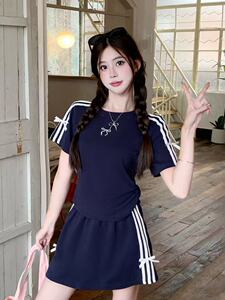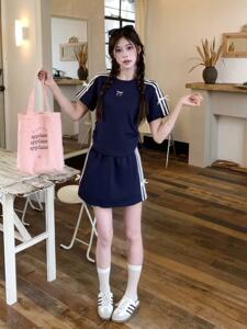 2025 新スポーツスタイルファッションスーツ女性の夏の痩身カジュアル半袖トップヒップカバースカート 2 点セット