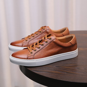 茶色のレトロな板靴2025新型ビジネスカジュアル靴ファッション丸頭男性スポーツシューズ