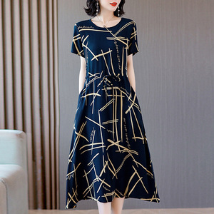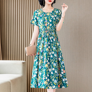 2025新型の気質の綿のワンピースの女性の夏のファッションは腰を収めてやせています。