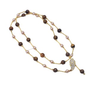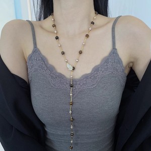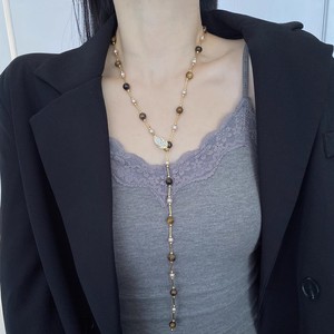 Medra レトロタイガーアイストーンビーズロングネックレスレディースライトラグジュアリーハイエンドコーヒー色パール鎖骨チェーン気質ネックレス