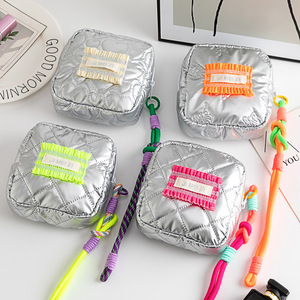 エンボスシルバーの手持ち生理用ナプキンバッグ