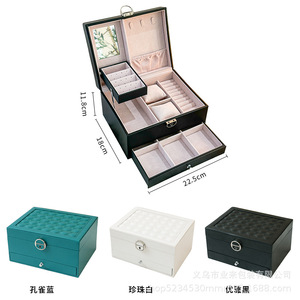 多機能大容量菱形ジュエリーボックスネックレスリングジュエリー収納ボックス三層抗酸化ジュエリーボックス