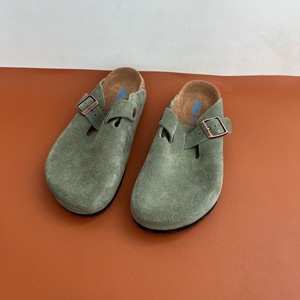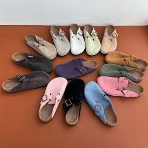 真皮コルク半包冷延2025夏男女同類の厚い底包頭ベーケンスリッパ半引き外はスリッパを履いている