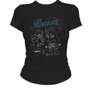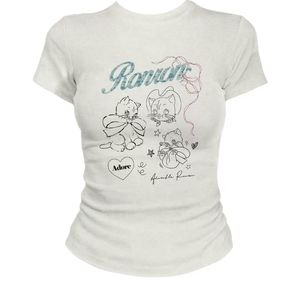 2025年アメリカンスタイルショルダーラインショートスリーブTシャツ レディース 夏 スリムフィット ハキミプリント セクシー オールマッチ ベースレイヤー