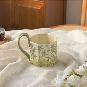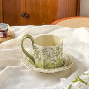 幸福緑鈴蘭八角形マグカップ陶磁器高颜値水コップ蓋付きスプーン付きお土産コーヒーカップ