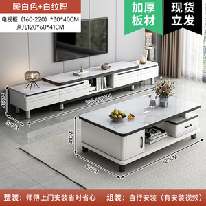 [ロックプレート] 伸縮式 (160-220) cm テレビキャビネット + 1.2m ロックプレート コーヒーテーブル