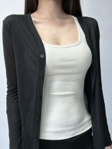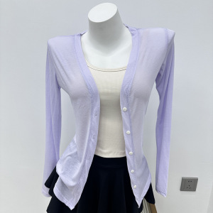 テンセル V ネックデザイン右肩空調モミニットカーディガン女性のための 2025 春夏の新しいハイエンドの女性の日焼け止め服