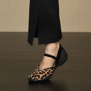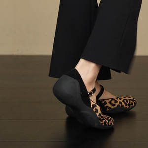レトロなメアリージェーンの靴の女性の小衆の豹の紋様は色を合わせます。