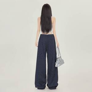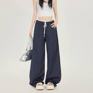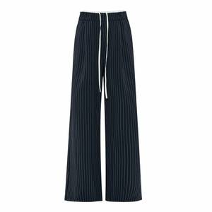 卸売ストライプ巾着弾性ウエストデザインレースカジュアルパンツ女性通勤多用途ハイエンドルーズワイドレッグパンツ女性