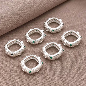 T899-11.3mm内7mm铜镀厚银强保色祥云波浪方形套珠圈-0.98g
