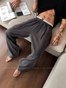 アメリカンレトロなコントラストストライプカジュアルパンツメンズ夏の新しい多用途ストレートレッグルーズワイドレッグロングパンツトレンディ