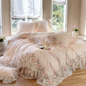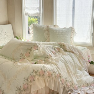 Fragrant flowers | 花のような純綿レースベッドカバー4点セット 高級マスターベッドルーム4点セット オールシーズン