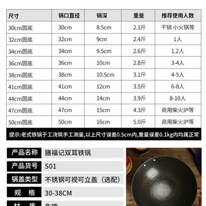 鋳鉄鍋伝統的な昔ながらの丸底双耳鋳鉄中華鍋農村家庭用ガスストーブ無塗装ノンスティック鍋工場