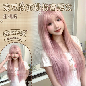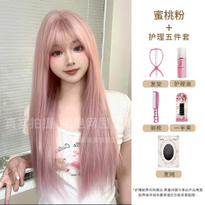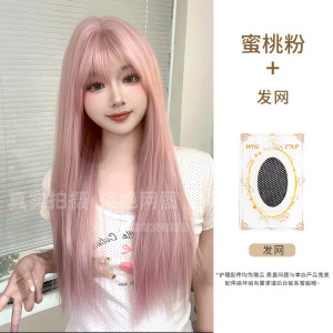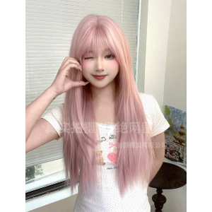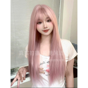 制覇かつらピンクのロングストレートファッション自然な質感高レベル日常jk甘いかわいい全頭カバー卸売り