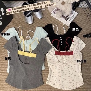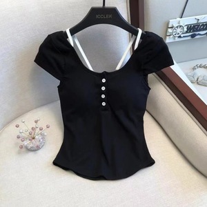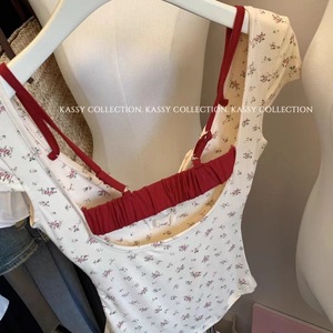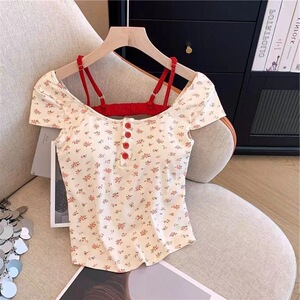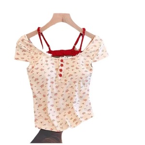色合わせのプリントの半袖は胸のクッションを持っています。