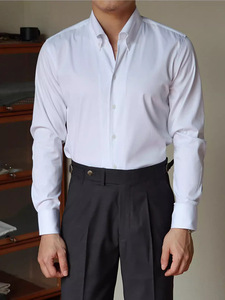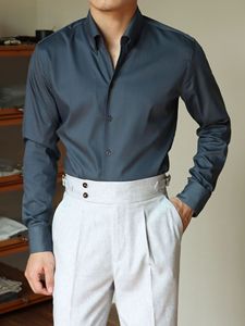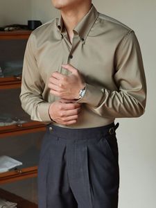 軽くて高級感のあるノンアイロンレトロメンズシャツ長袖2025春夏アイスシルクビジネス無地シワ防止シャツ