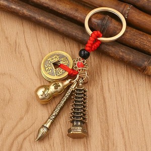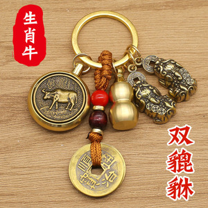 真鍮干支回転ダブル貔貅ひょうたんキーホルダー車の金属小さな中国風のキーペンダントアクセサリー卸売