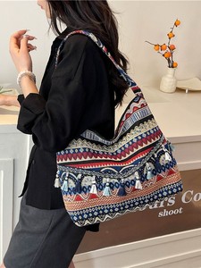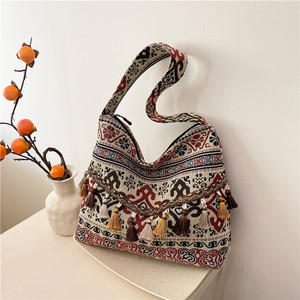 エスニックスタイルの大容量トートバッグ女性のための 2025 新しいファッショナブルなスタイルのタッセルショルダーバッグカジュアル多用途ハンドバッグ