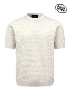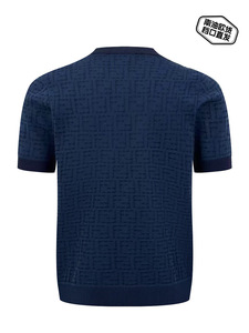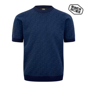 25FJフルプリントFFニット半袖男性ジャカード抜き氷糸tシャツスリムニット