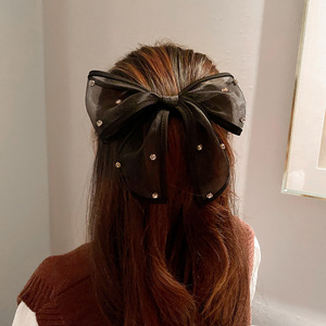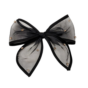 スーパーフェアリー気質メッシュ大きなリボンラインストーンヘアピン頭飾り女性の後頭部エレガントで多用途なスプリングクリップジュエリー