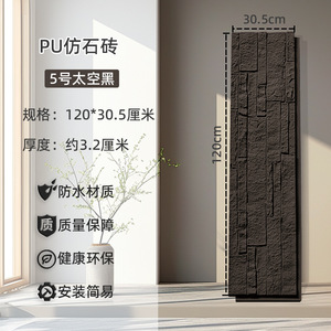 PU模造石レンガ-No.6スペースダークブラック1200*305mm