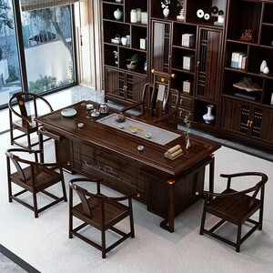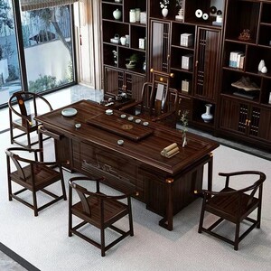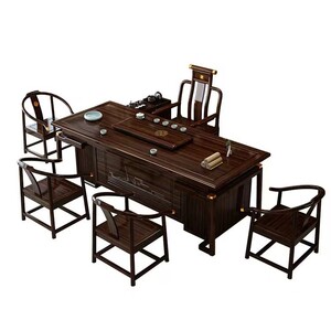 新しい中国風のウッディウッド全無垢材ティーテーブルと椅子の組み合わせリビングルームホームティールームオフィスコーヒーテーブルカンフーティーテーブル