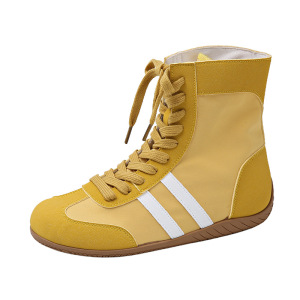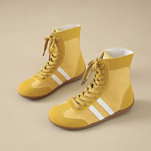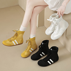 女性のためのハイトップフラットボクシングスニーカー 2025 新しい本革ラウンドトゥ多用途カジュアルシューズレースアップマーティンブーツトレンディ