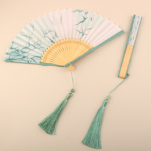 高級緑竹扇子古風中国風ダンス扇子女性プレゼント漢服チャイナドレス夏折り畳み扇子