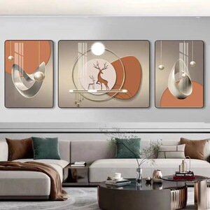モダンでシンプルなハイエンドのクリスタル磁器ダイヤモンド三連祭壇画リビングルーム装飾絵画ライト高級ソファ背景壁画壁掛けリビングルーム