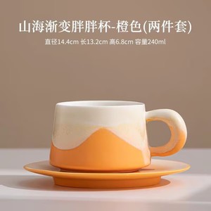 グラデーションコーヒーカップとソーサーセットセラミックマグ蓋付きホームオフィスアフタヌーンティーカップカップルギフトロゴ