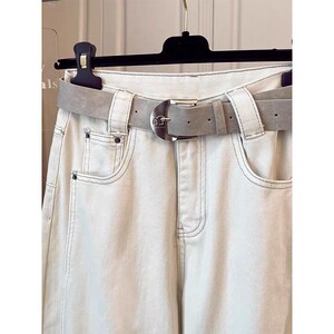 レトロな米の白い曲がり角のジーパンの女性2025の新型の大きいサイズの太っているMMの腰はやせていてゆったりしています。