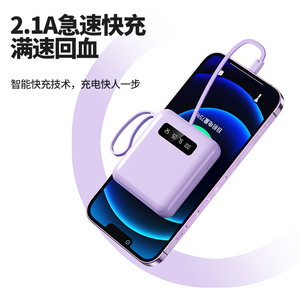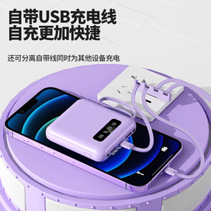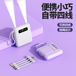 クロスボーダー 20000 mAh コード付きミニパワーバンク、小型、ポータブル、高速充電、大容量モバイル電源プリント