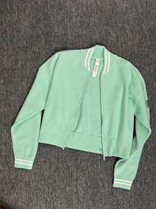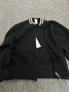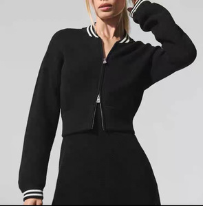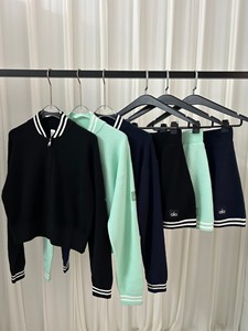 alo2025秋 カラーブロックトリム ベースボールカラー ジップアップニットジャケット スカートセット