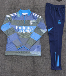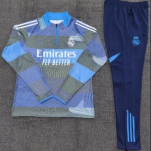 2526 子供用長袖ハーフプルトレーニングウェアレアルマドリードマイアミバルセロナサッカーユニフォームセット工場直販