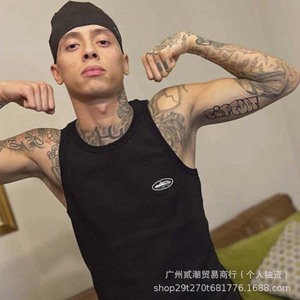 CZ悪魔島重ポンドアメリカ重工刺繍ニットチョッキ男性用修身運動フィットネス上着潮