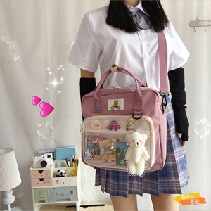 韓国ins学院風両用かばん日系かわいいアニメ学生痛包大容量少女手提げ斜め掛け