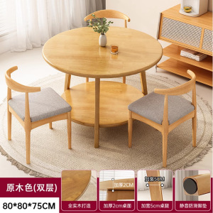【総無垢材丸テーブル 二層総無垢材】 ログカラー φ80×75cm テーブル1脚、チェア3脚
