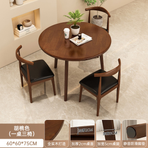 テーブル1脚、チェア3脚 【直径80CM】ウォールナット色(アイアンホーンチェア)