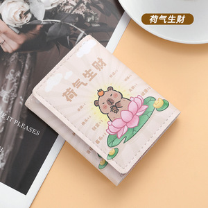 2025新型財布カードバッグ二合一カードバラかわいい乳黄アニメ三つ折り学生小銭入れ