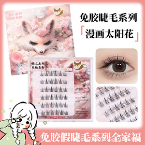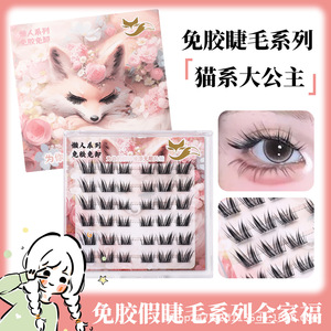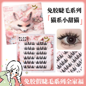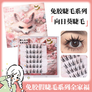 接着剤不要のつけまつげ、写真に映る、怠惰な初心者まつげ、接着剤不要のつけまつげ、軽くて快適なまつげ、取り外し不要、粘着性、ナチュラル