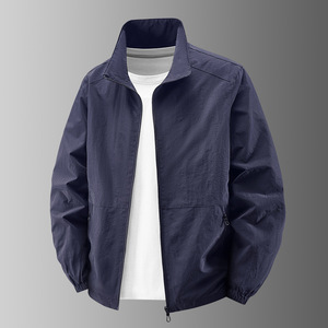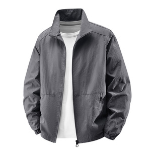 跨境批发跨境春秋立领外套男士薄款网格内里夹克男青年休闲保暖冲