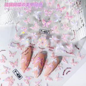 5D エンボスシェルライトバタフライ立体ネイルステッカー粘着防水長期的なネイルアートステッカーネイル装飾クリエイティブステッカー