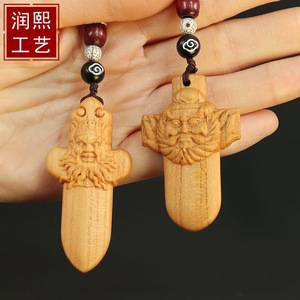 ピーチウッドソード Zhong Kui 両面彫刻ジュエリーペンダントペンダントネックレスポータブル子供大人男性と女性の手作りキーホルダー