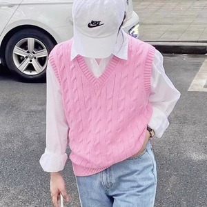 ラフ馬標刺繍ベスト馬甲vネック外着2025セーター女性ゆるいニット外着袖なし上着