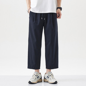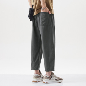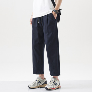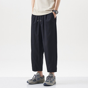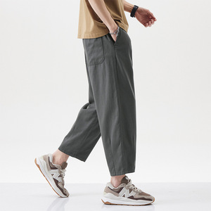 メンズカジュアルパンツ、ゆったりとした純綿、夏用の薄手、トレンディ、快適、多用途、ハンサムな男性用ストレート9点パンツ