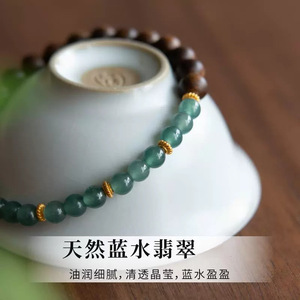 女性用半山半水天然沈香ブレスレット、新しい中国風のブルーウォーター翡翠中国学ブレスレット、国民トレンドライト高級ギフト