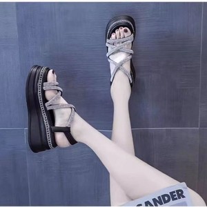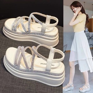 2025 夏の新厚底高さ増加フェアリースタイルアウターラインストーン多用途インターネットセレブプラットフォームウェッジヒールローマサンダル女性用