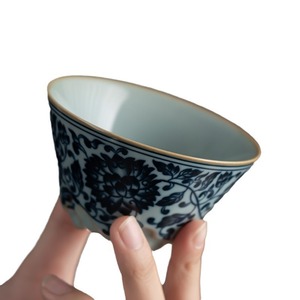 天青汝窑青花缠枝莲主人杯品茗杯开片可养功夫茶杯单杯个人杯子
